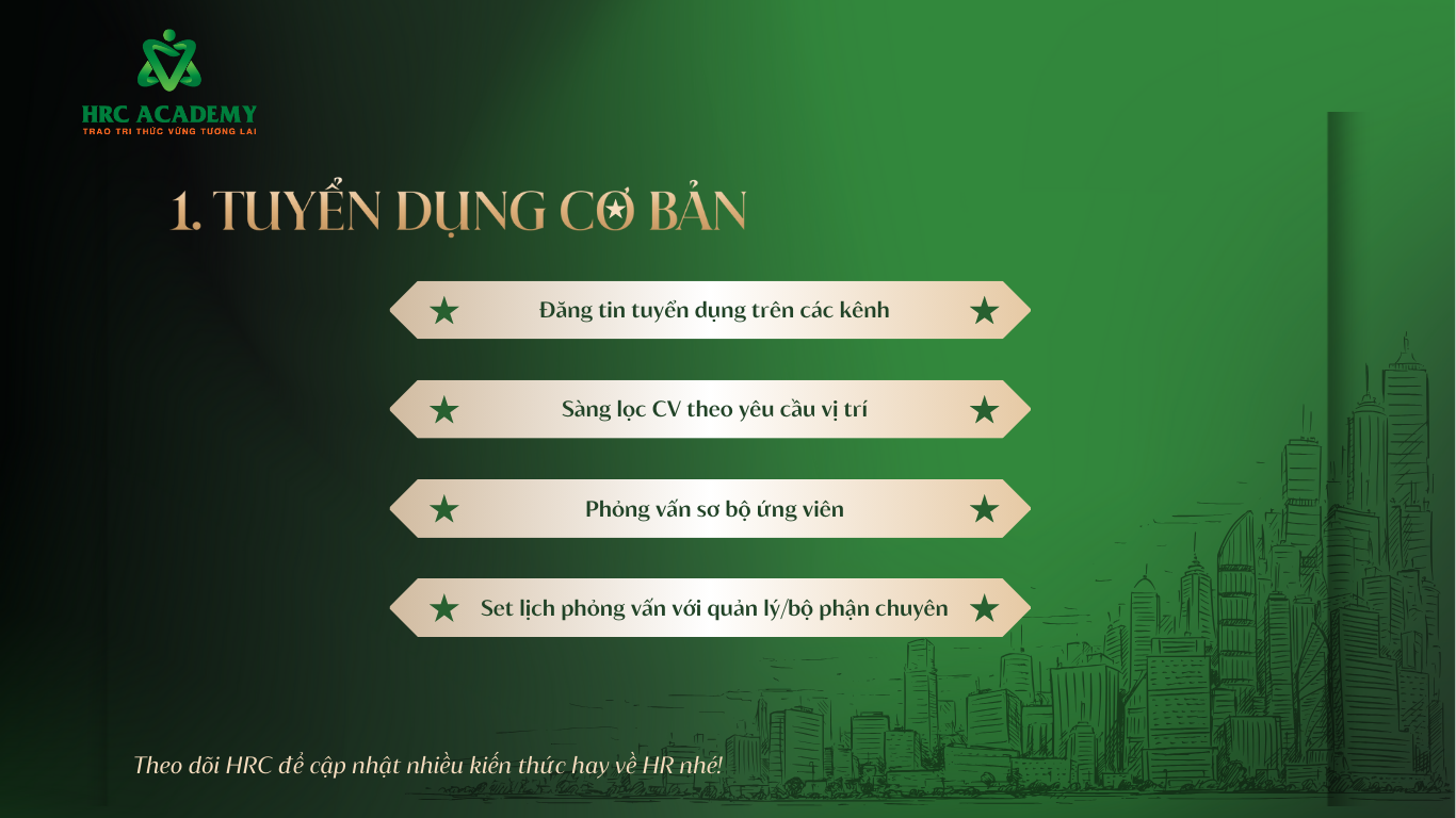 Tuyển dụng thường là đầu việc đầu tiên mà một nhân sự mới được giao. Với HCNS tổng hợp, tuyển dụng không đơn thuần là đăng tin và gọi ứng viên, mà là một quy trình hoàn chỉnh.