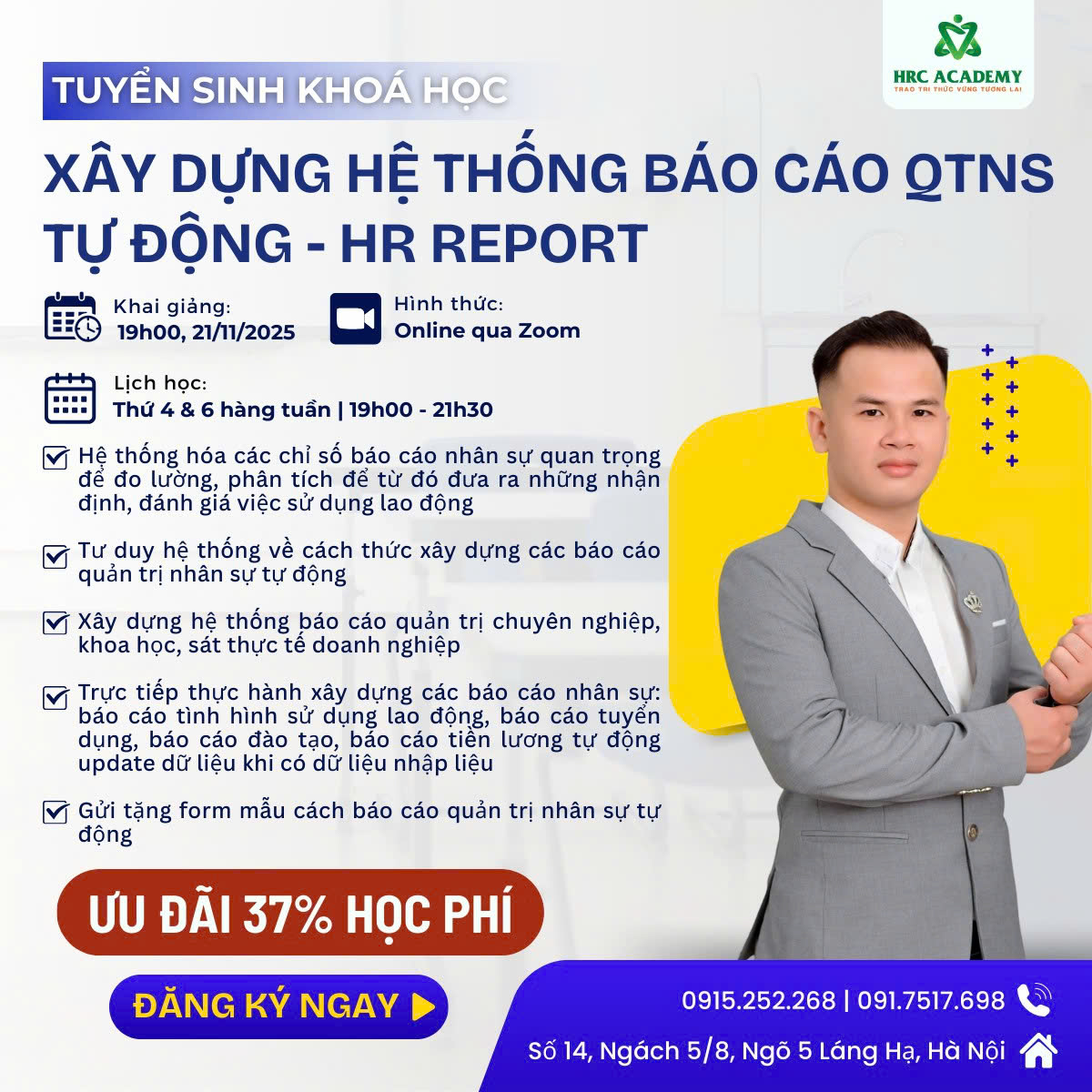 HRC Academy trân trọng thông báo: Tối 21/11, khóa học “Xây dựng hệ thống báo cáo Quản trị Nhân sự tự động – HR Report K28” sẽ chính thức khai giảng, dành cho những Anh/Chị đang làm nhân sự và mong muốn nâng cấp tư duy báo cáo theo hướng chuyên nghiệp – khoa học – tự động hóa.